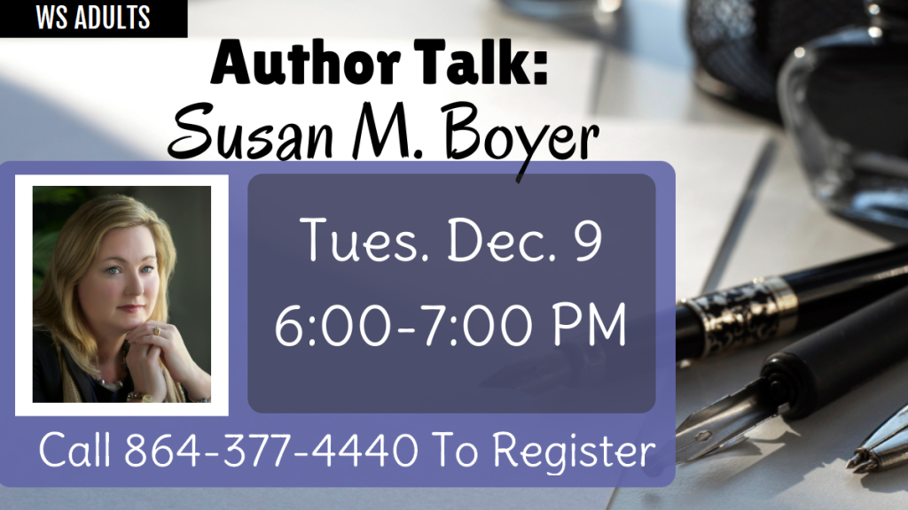 Come to a special after hours author talk with the Carolinas own USA Today bestselling author, Susan M. Boyer.